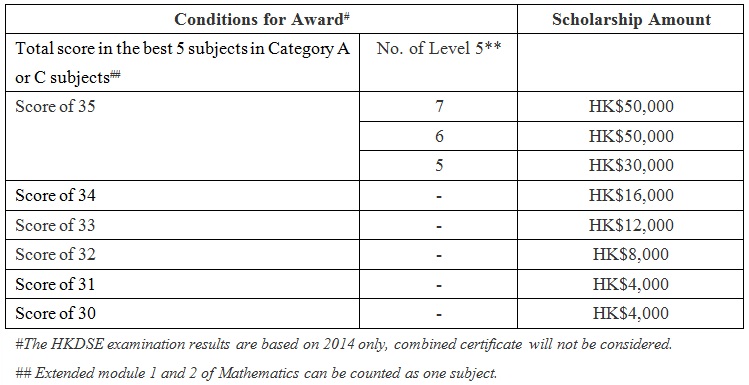 In addition to the HKU Foundation Scholarship for Outstanding Students, the Entrance Scholarships would be offered to JUPAS applicants admitted to the following programmes in September 2014: