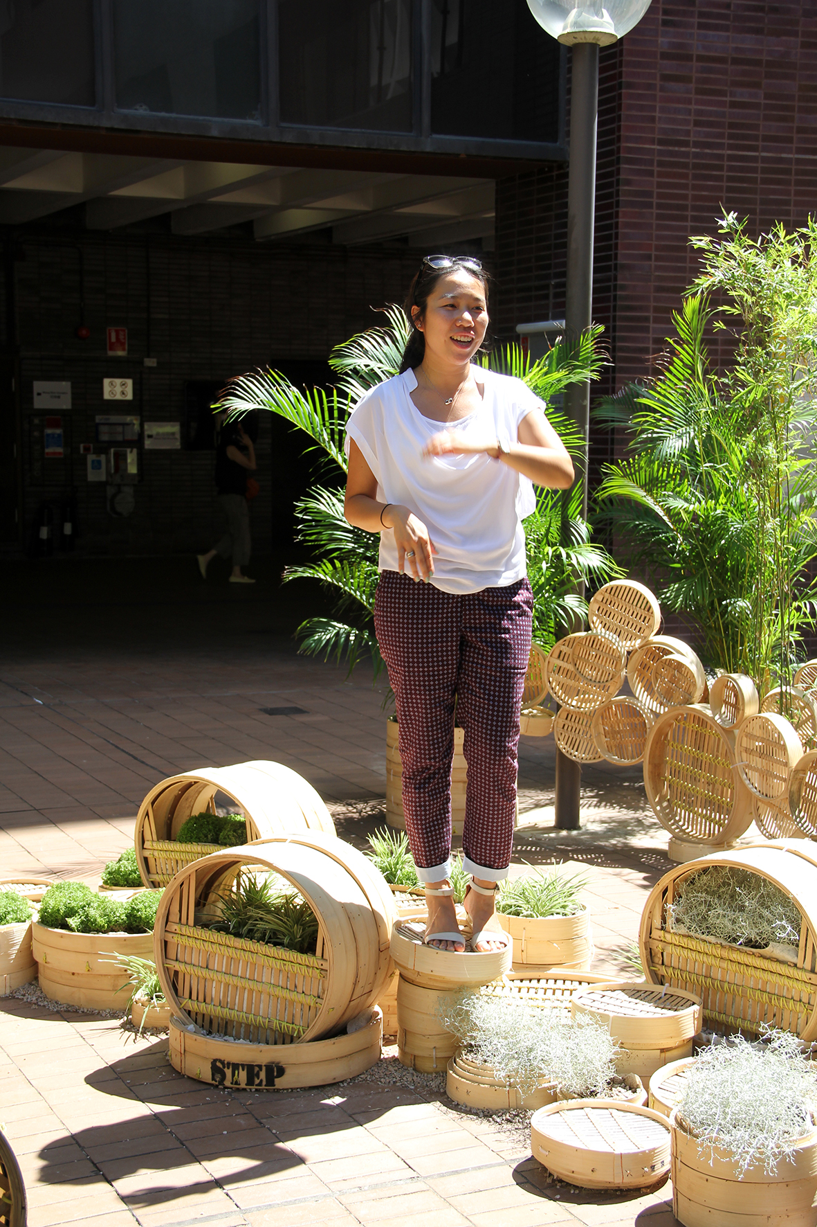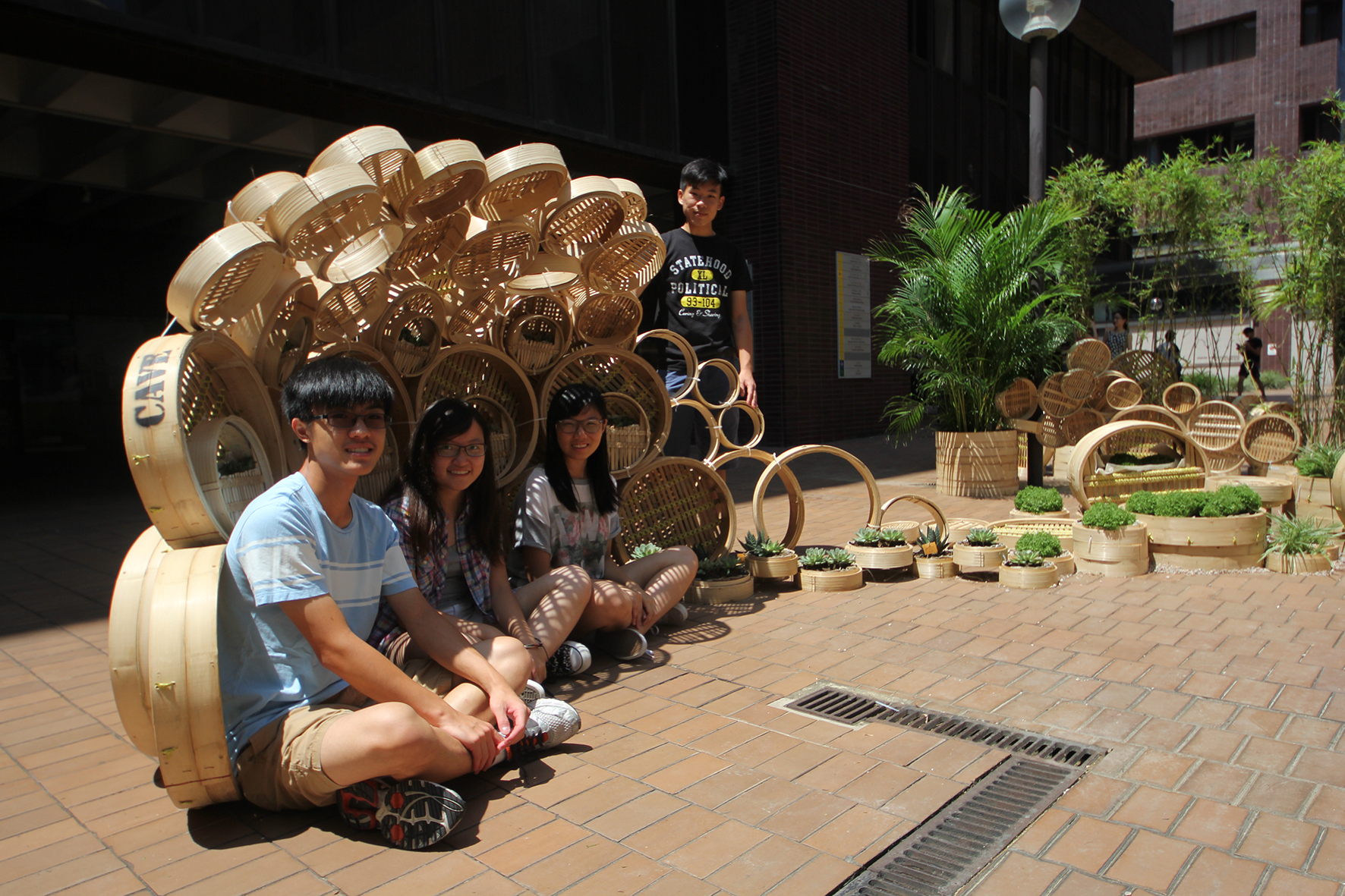 At the installation presentation, the Head of Division of Landscape Architecture Mr Matthew Pryor praised the students for their creativity. Ms Vincci Mak, Program Director of CDLA and Assistant Professor at the HKU Division of Landscape Architecture, chose Chinese steamers as the building material for students to learn space-making. She explained, “While Chinese steamer is an everyday object that most students are familiar with culturally, it is also made with modular dimensions for easy stacking and assembling”. She hopes that the easy-maneuvering of space-making materials can help encourage young people to get excited about design and creation of space.