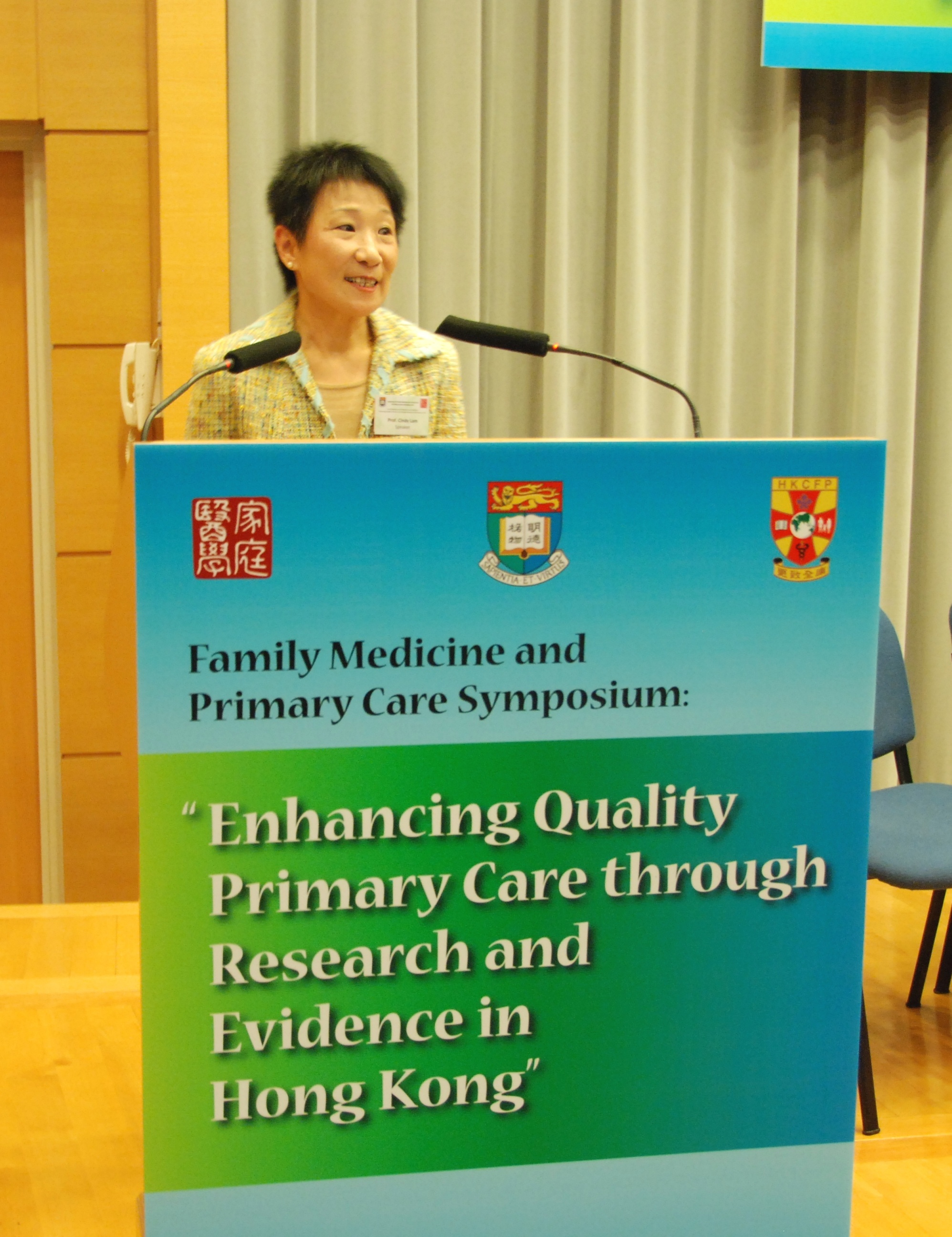 Professor Cindy LAM Lo-kuen, Head of Department of Family Medicine and Primary Care, welcomed the speakers and guests who joined the Family Medicine and Primary Care Symposium to celebrate the inauguration of our Department. She stressed that the newly established Department of Family Medicine and Primary Care is dedicated to enable medical graduates to become more person-centred, humane, effective, efficient, communicative and empathetic doctors. Family medicine professes in the delivery of quality primary care. "Family medicine distinguishes itself from other disciplines by its emphasis on holistic and comprehensive care that counters the growing trend of fragmented specialised medical care. Our mission is to promote health and best evidence-based practice for our population and collaborate with other medical, nursing, health and social disciplines in research and service. This symposium is the beginning of a continuing primary care research initiative that the Department has committed to carry out in Hong Kong and the region." Professor Lam remarked.