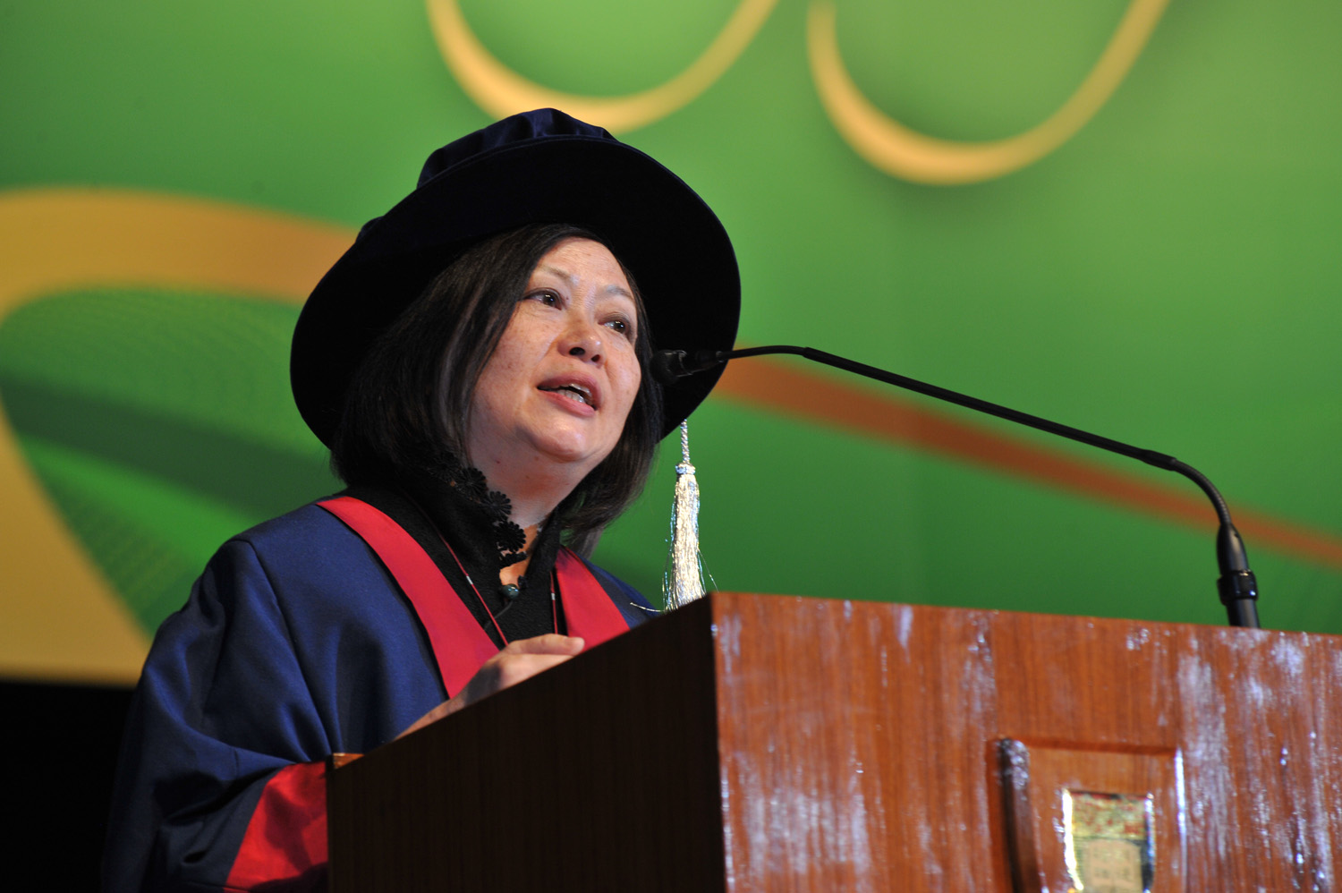 "People in the east and west both want the same things - equal rights for all, and the ability to shape one's future." Ms Wu reminded the graduates the values they share, that the University is built on the bedrock of meritocracy, equality and diversity."